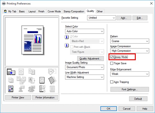 In the [Quality] tab, select the [Glossy Mode] check box.