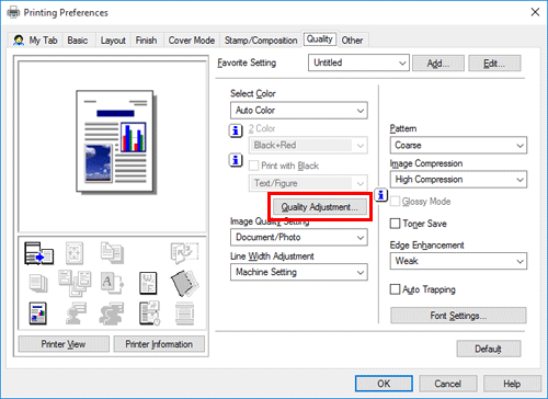 [Quality Adjustment] is available only when the printer driver for Windows is used.