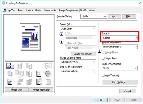 In [Pattern] in the [Quality] tab, select the graphic pattern density.