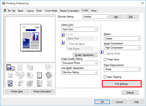 In the [Quality] tab, click [Font Settings].