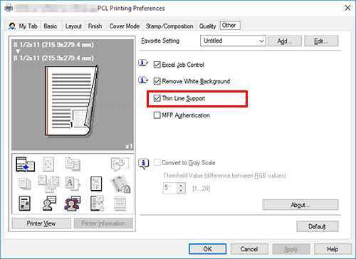 In the [Other] tab, select the [Thin Line Support] check box.