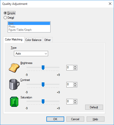 You can adjust the overall image quality of the original, and you can also adjust in detail the image quality of each element of the original, such as text and photos. When you are using the PCL driver, you can adjust the brightness and contrast.