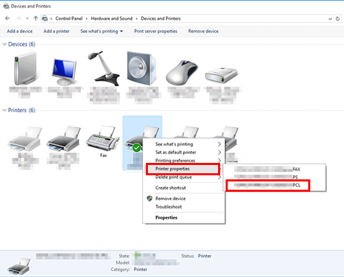 • Right-click the icon of the installed printer, and from [Printer properties], click the displayed printer name.