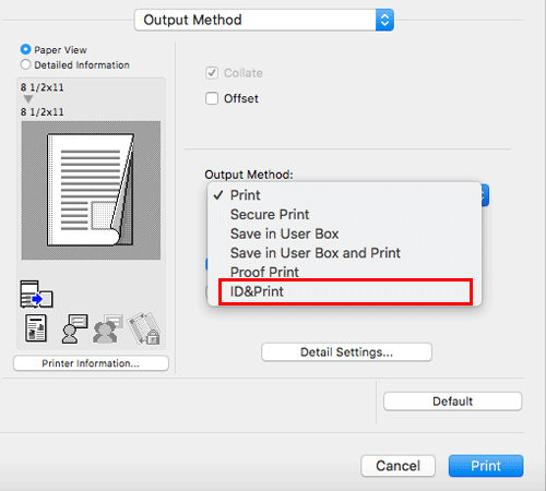 In [Output Method:], select [ID&Print].