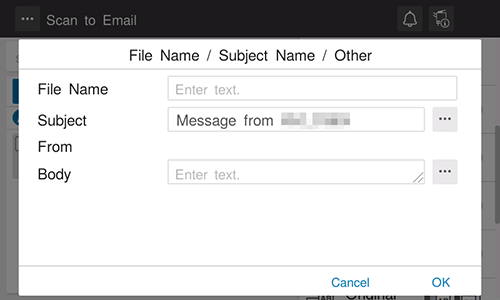 Change the file name of the scanned original. When sending by E-mail, you can specify the subject and text of the E-mail message and change the sender's E-mail address ("From" address).