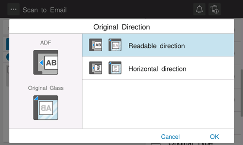 When scanning a 2-sided original, specify the original loading direction so that the vertical direction of the scanned original is set correctly.