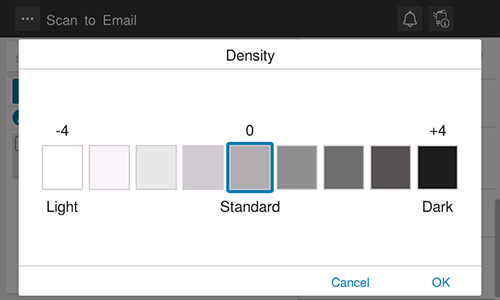 You can adjust the density of the background area for originals with colored backgrounds (newspaper, recycled paper, etc.) or originals that are so thin that text or images on the back would be scanned.