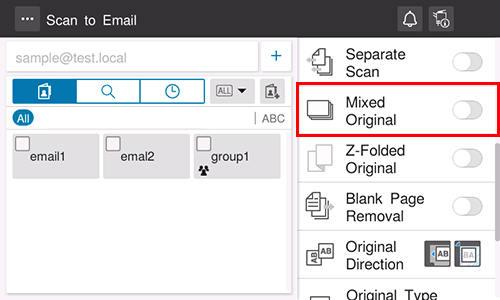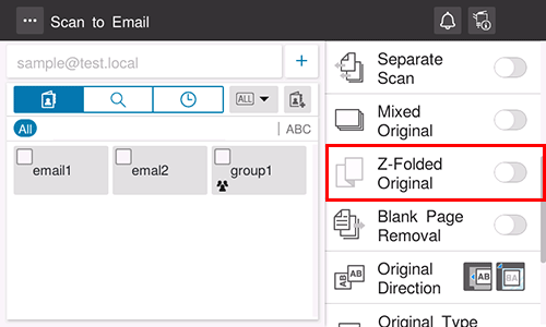 If a folded original is loaded into the ADF, the original size may not be able be detected accurately. To scan the folded original on the ADF, set this option to ON.