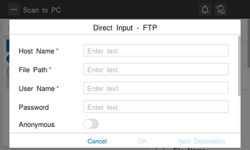 • Example to enter the folder name in the folder: "scan/document"