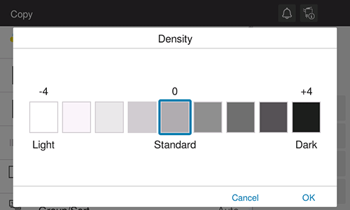 [Copied Paper] | Copies the original, which is output with an even density from the copier or printer, at the optimum image quality level. |