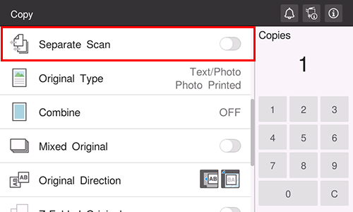 If the number of original sheets is so large that they cannot be loaded into the ADF at the same time, you can load them in several batches and handle them as one job. You can also scan the original using both ADF and Original Glass alternately.