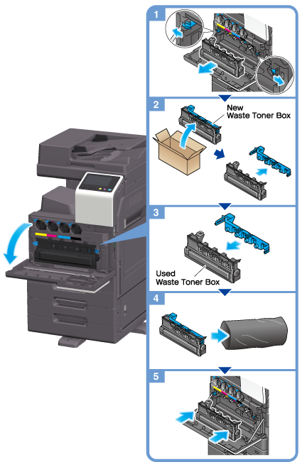 Your service representative will collect your used Waste Toner Box. Put it in a plastic bag, and store it in a box by itself.
