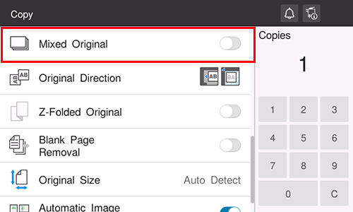 If a sheet is loaded on the Original Glass, leave the Original Cover open.