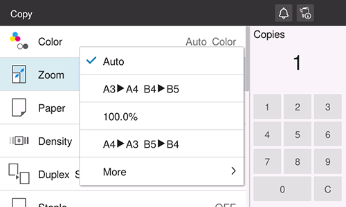 A. Yes. You can automatically make a copy with the optimal zoom ratio to fit the paper size by simply selecting the paper size you want to apply to the loaded original.