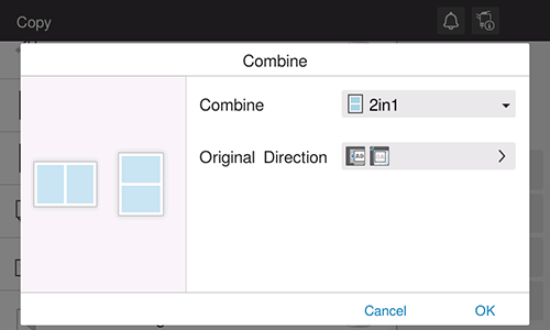 In [Combine], select the number of pages to copy on the same side of a single sheet.