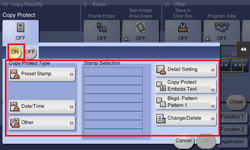 [Stamp Selection] | Part of the currently set concealed security watermarks can be listed. You can set up to eight watermarks. | |