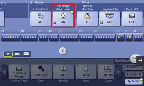 Tap [Application], select [Non-Image Area Erase], then select [ON].
