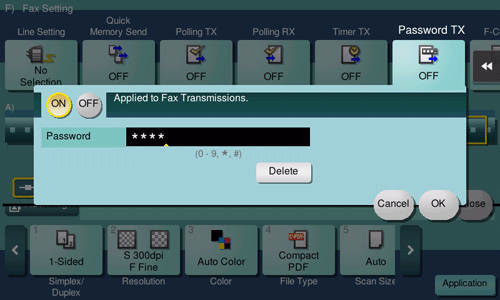 [ON]/[OFF] | Select [ON] to set Password TX. |