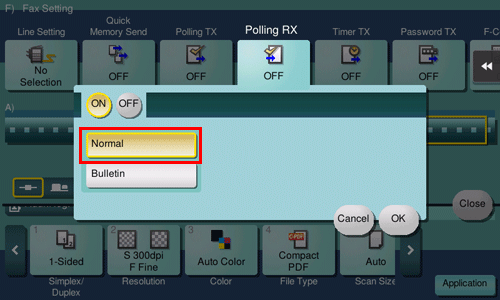 Tap [Application] - [Fax Setting] - [Polling RX], and tap [ON].
