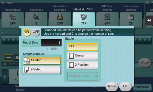 [ON]/[OFF] | Select [ON] to perform sending and printing at the same time. |