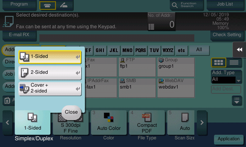 [Cover + 2-sided] | Scans only one side for the first page in the original, and scan both sides of the remaining pages. |