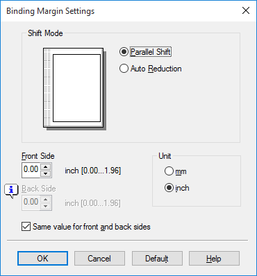 When printing images on both sides, selecting the [Same value for Front and Back sides] check box applies the same settings to both sides.