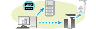 You need to perform user authentication on this machine to print the data saved in the User Box. Therefore, this function is suitable for safely printing highly confidential documents. When authentication succeeds, the print data of the login user is automatically printed. This enhances security as well as ensures smooth operation.