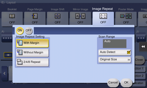 [ON]/[OFF] | Select [ON] to specify Image Repeat. |