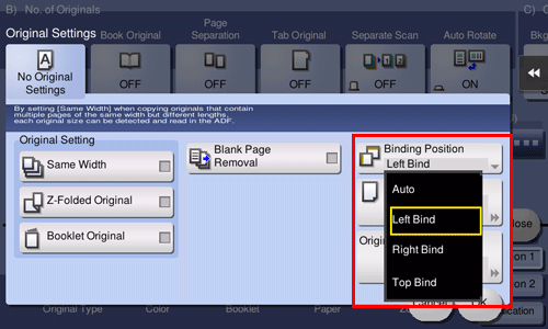 [Left Bind] | Select this option when the binding position is set to the left of the original. |