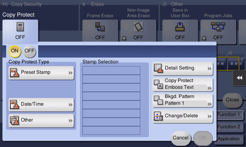 [Copy Protect Type] | Select a stamp used. The date and time can also be printed.