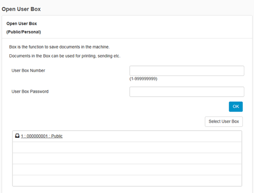 • [User Box Password]: Enter the User Box password (using up to 64 characters, excluding double quotation marks ").