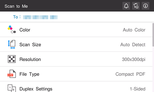 Selecting [Scan to Me] on the home screen allows you to easily send an E-mail only to you.
