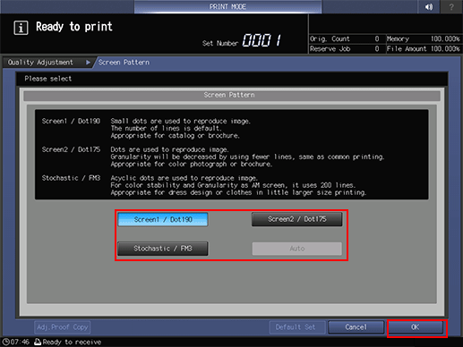 supplementary explanationAlso, you can select any desired screen after pressing Screen Pattern to display the Screen Pattern screen. Select a screen, and press OK.