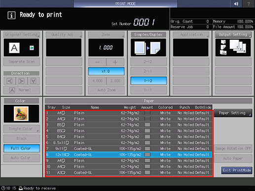 supplementary explanationLoad paper (lengthwise (X): 420.0 mm to 487.7 mm and widthwise (Y): 279.4 mm or more) into the tray, then select that tray key.