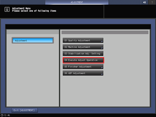 The four adjustment operations above are the same as for the adjustment operation performed by selecting Administrator Setting - System Setting - Expert Adjustment - Execute Adjust Operation from the UTILITY screen.