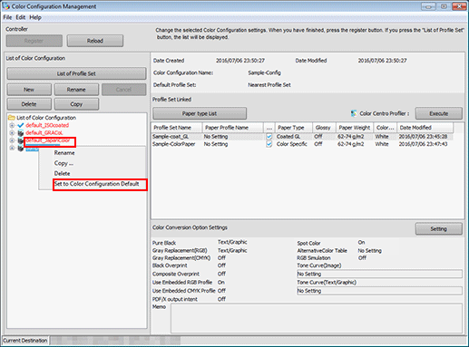 •The above two profile sets are registered in a color configuration that is created with the name Sample_Config.