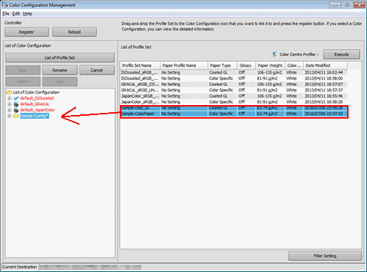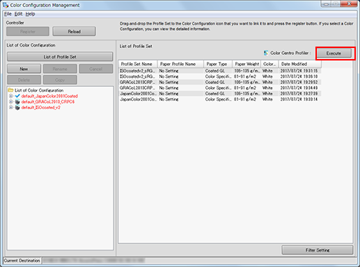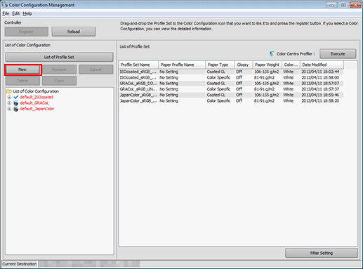 You can create a color configuration with Color Centro and register existing profile sets to activate the color configuration.