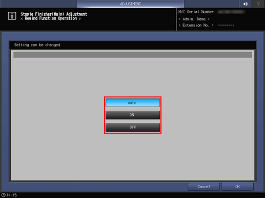 The screen returns to the Staple Finisher(Main) Adjustment Menu screen.