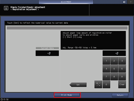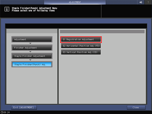 The screen returns to the Staple Finisher(Punch) Adjustment Menu screen.