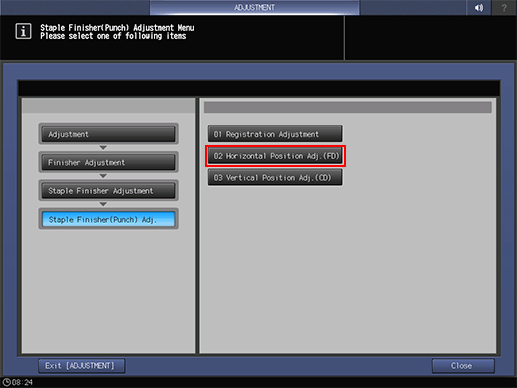 The screen returns to the Staple Finisher(Punch) Adjustment Menu screen.