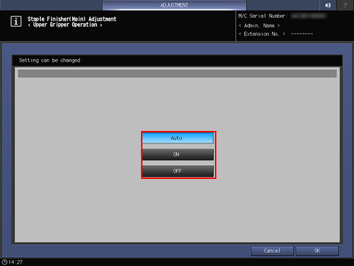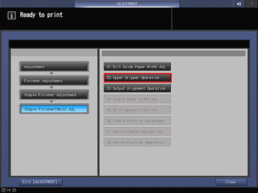 2. Press Finisher Adjustment, Staple Finisher Adjustment, Staple Finisher(Main) Adj., and Upper Gripper Operation in sequence.