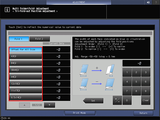 10. Select Fold 2, and then use the touch panel keypad to enter the set value.