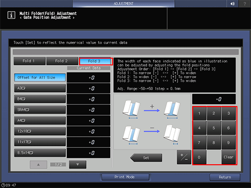 Select Fold 3, and then use the touch panel keypad to enter the set value.