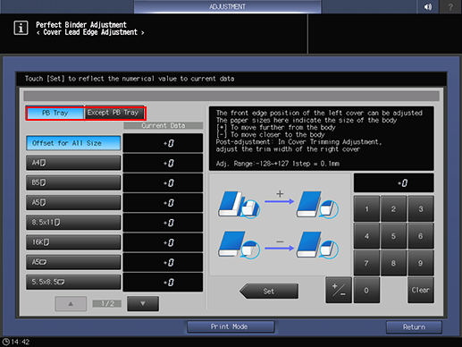 The screen returns to the Perfect Binder Adjustment Menu screen.