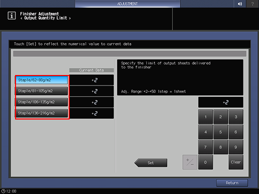 Objects of Adjustment: Staple / 62 to 80 g/m2, Staple / 81 to 105 g/m2