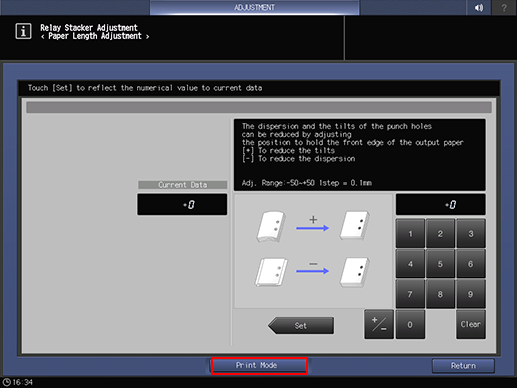If any adjustment is required, use the touch panel keypad to enter the set value.