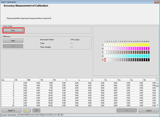 After measurement, check the CMYK density, gray balance, and other results to determine whether advanced controller calibration is necessary.