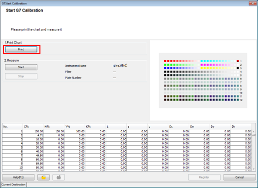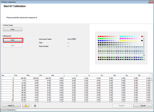 4. Measure the chart using the instrument. After you finish the chart measurement, click Register.
