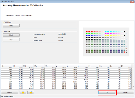 • supplementary explanationCheck the measurement results, and if necessary, proceed to advanced controller calibration (Executing the G7 Calibration).