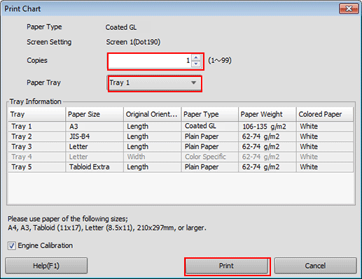 4. On the Print Chart screen, set the Copies and Paper Tray. After setting, click Print.